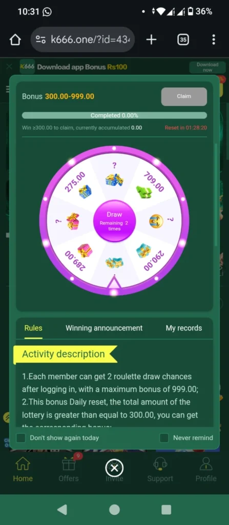 K666 Earning App provides multiple ways for players to earn rewards while enjoying mobile gaming. Moreover, the platform offers daily bonus rewards that increase user balance and motivate consistent participation. In addition, players can earn through different game categories, including lottery, casino, and prediction games.
